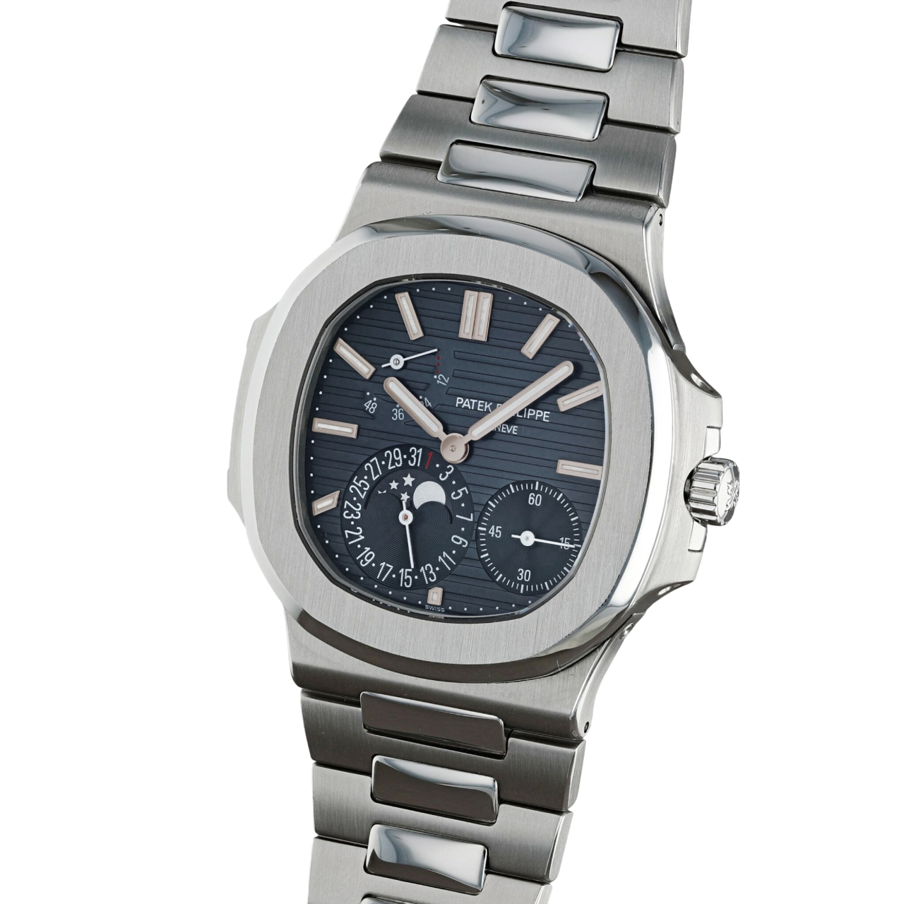 - Blue Dial with Moonphase and Power Reserve Indicator: A complex and refined dial that displays the moonphase, power reserve, and date, with luminous markers for readability.