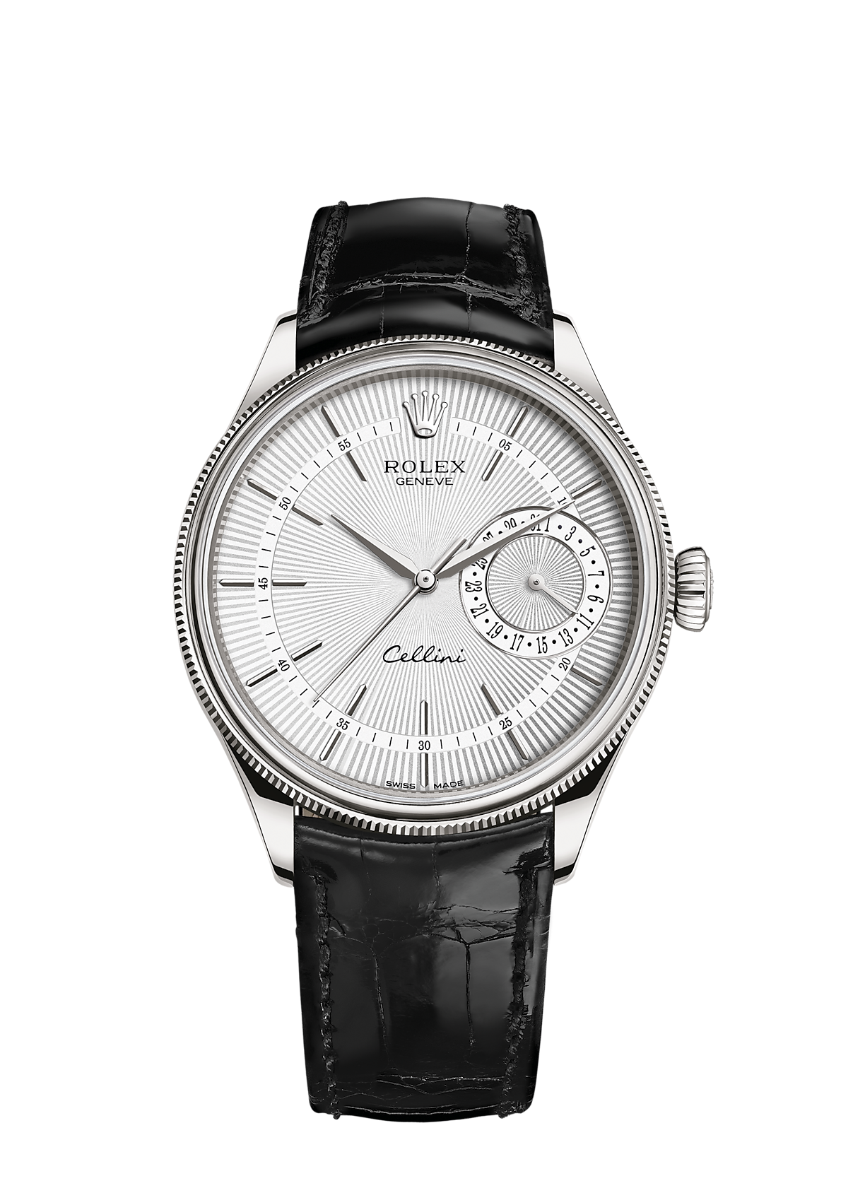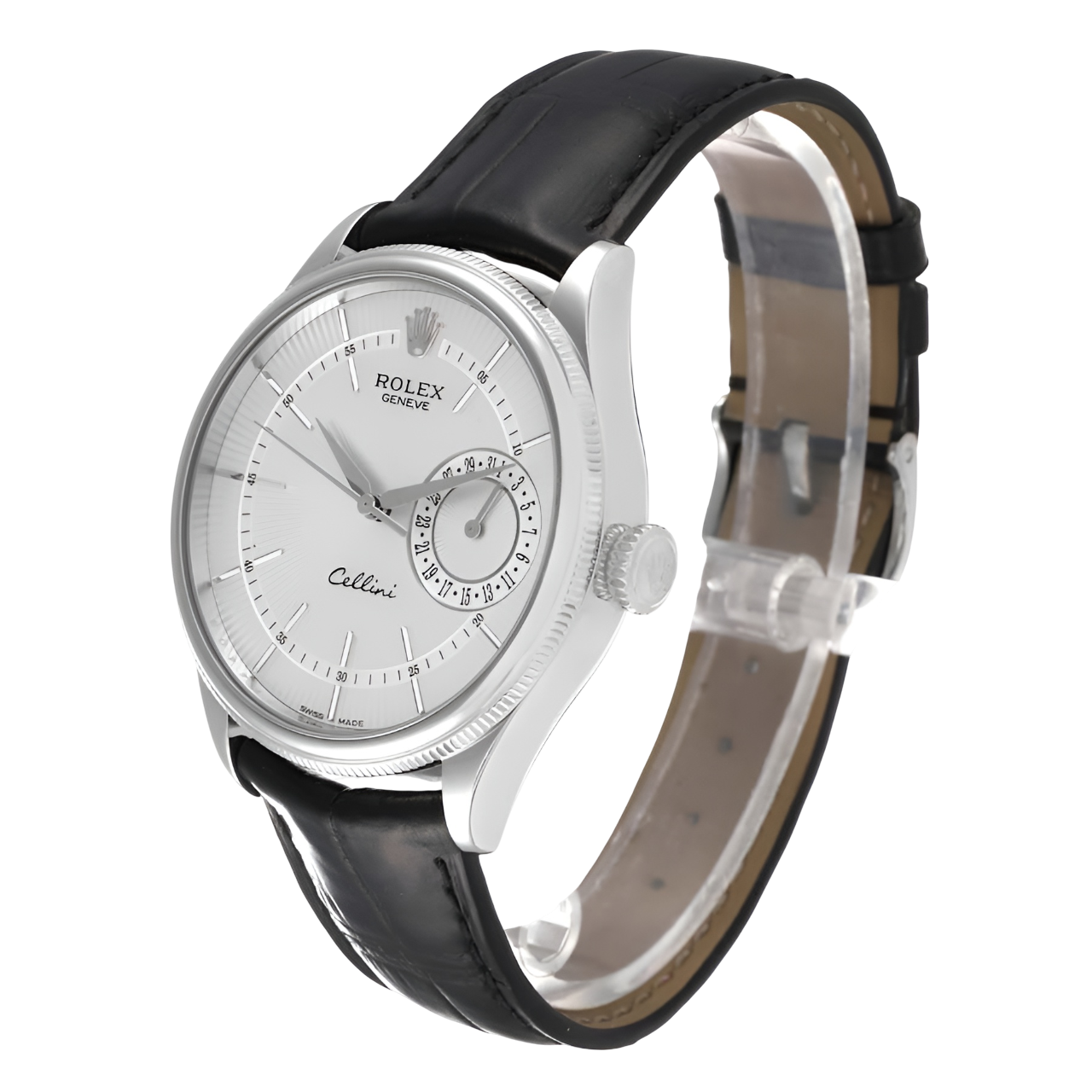 The Rolex Cellini Date 50519 is the epitome of classic sophistication. Crafted from 18K white gold, this refined timepiece features a simple yet elegant design with a date function, perfect for those who appreciate understated luxury.- 39mm 18K White Gold Case: A sleek and durable design that radiates refinement and elegance.